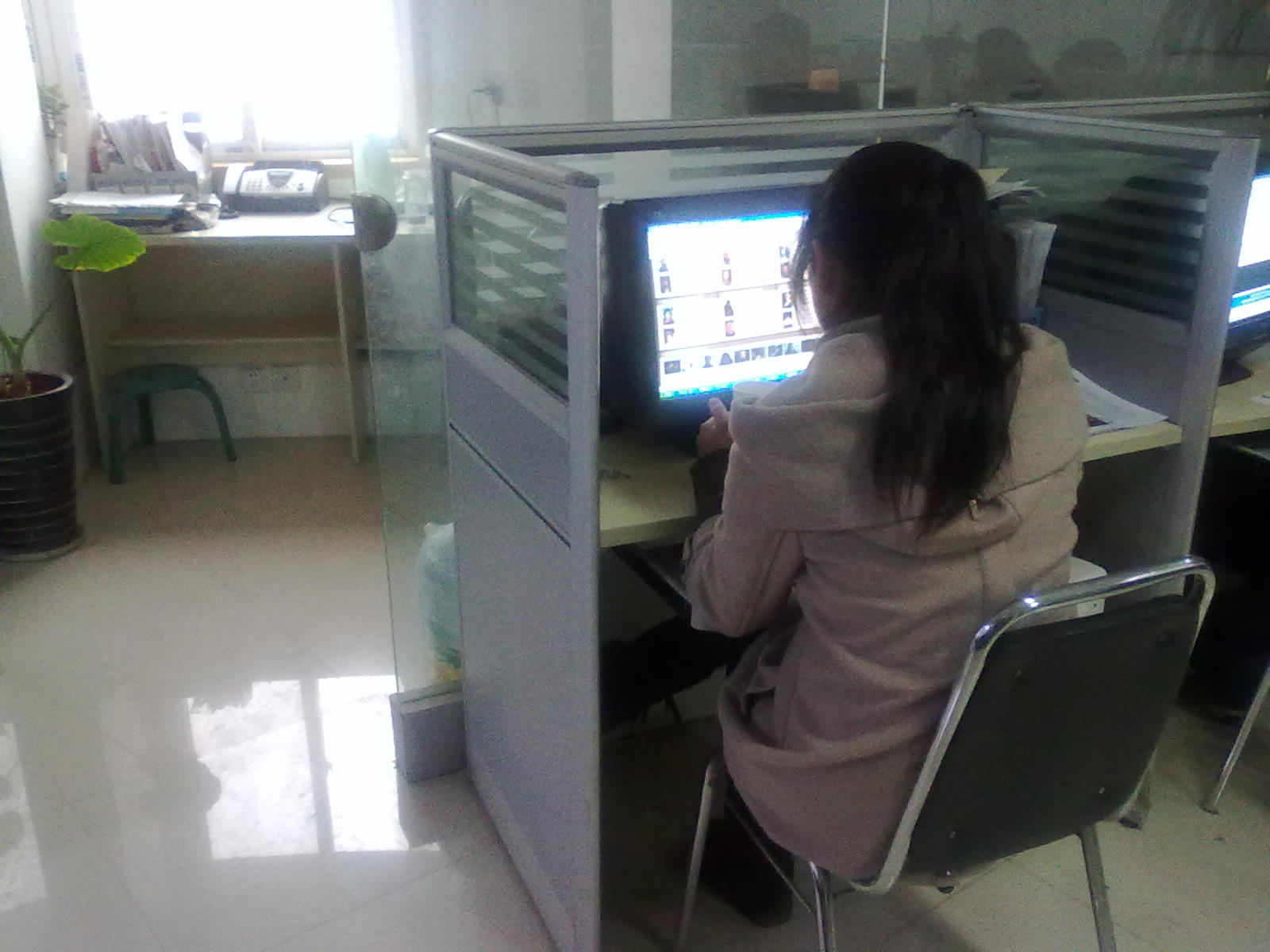 浩方網(wǎng)站建設(shè)團(tuán)隊(duì)中的美工美女眼一直不離電腦,努力的在工作。