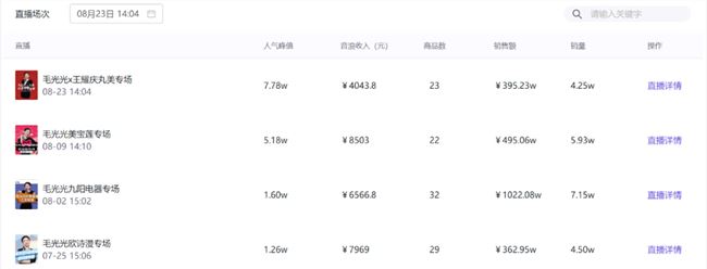 而毛光光從視頻內(nèi)容就開始有針對性的運(yùn)營,垂直美妝品類的直播也是讓自己直播帶貨的高度逐漸疊加,現(xiàn)在已將開始拓展自己的品類,前不久的九陽電器專場也取得了不錯(cuò)的成績。